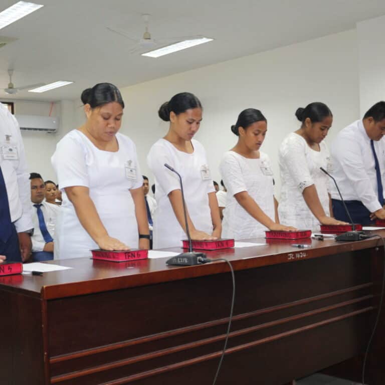 In front of the Honorable Judge Talasa Atoa Saaga, 31 females and 17 males recited their oaths as they prepared to start their police careers in the Samoa Police, Prisons & Corrections Services.